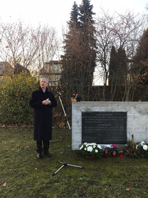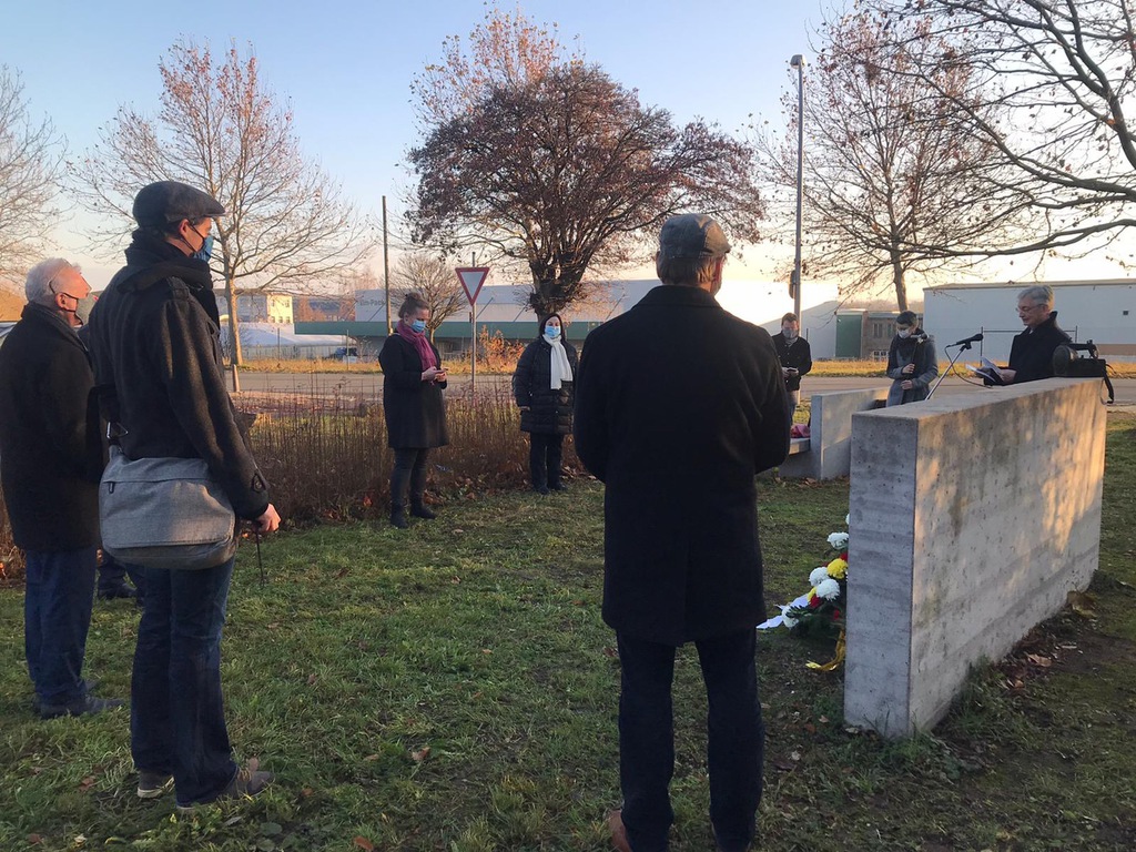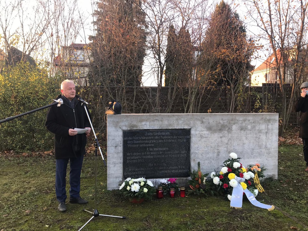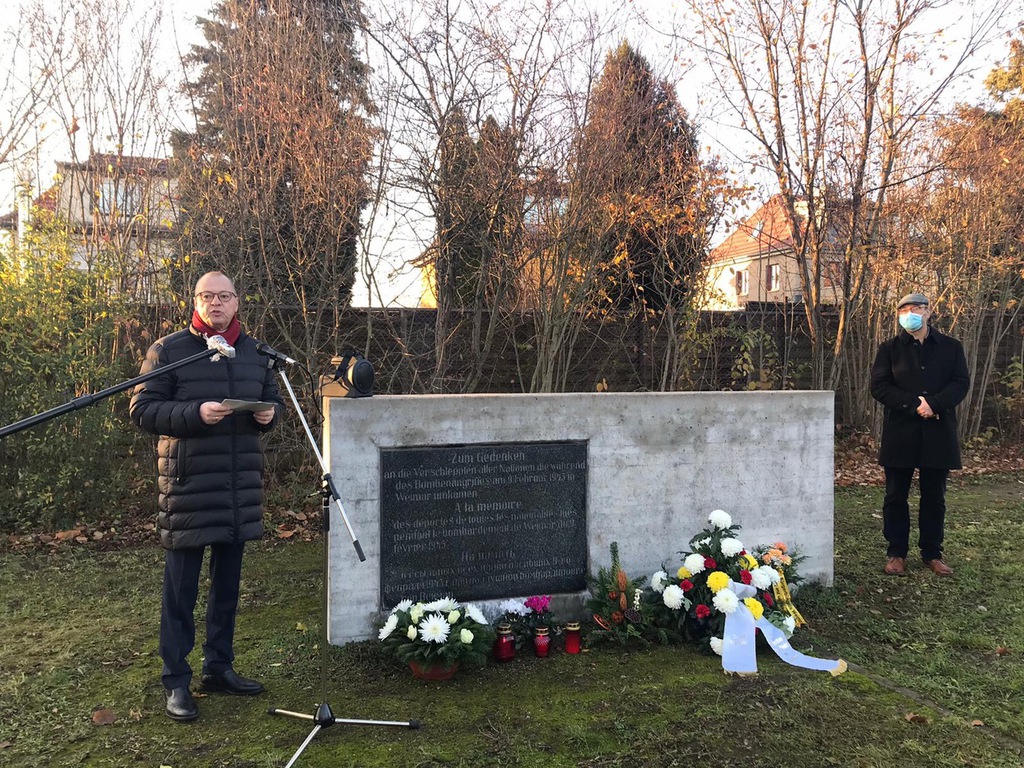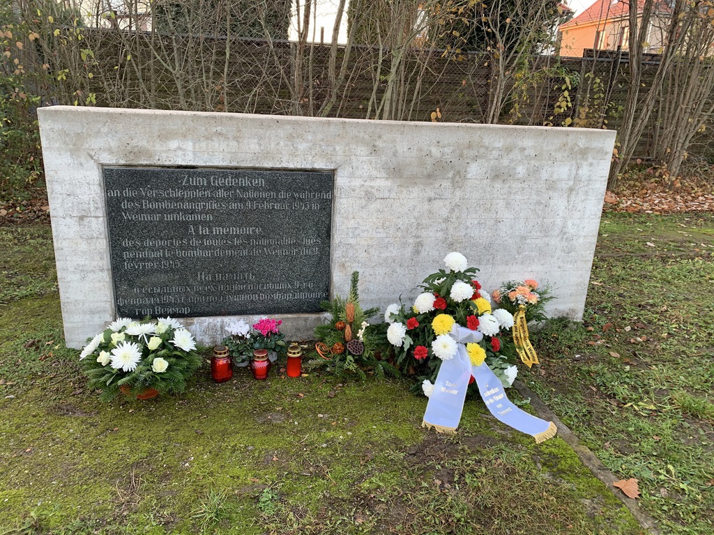 Der Weimarer Dreieck e.V. , Bürgerbündnis gegen Rechtsextremismus Weimar und die Stadt Weimar hatten coronabedingt unter Auflagen am 27. November auf dem Gelände des großen KZ- der ehemaligen Gustloff- Werke /Gedenkstele Andersenstraße/ Ecke Kromsdorfer Straße zu einer nicht-öffentlichen Gedenkveranstaltung in Weimar eingeladen.