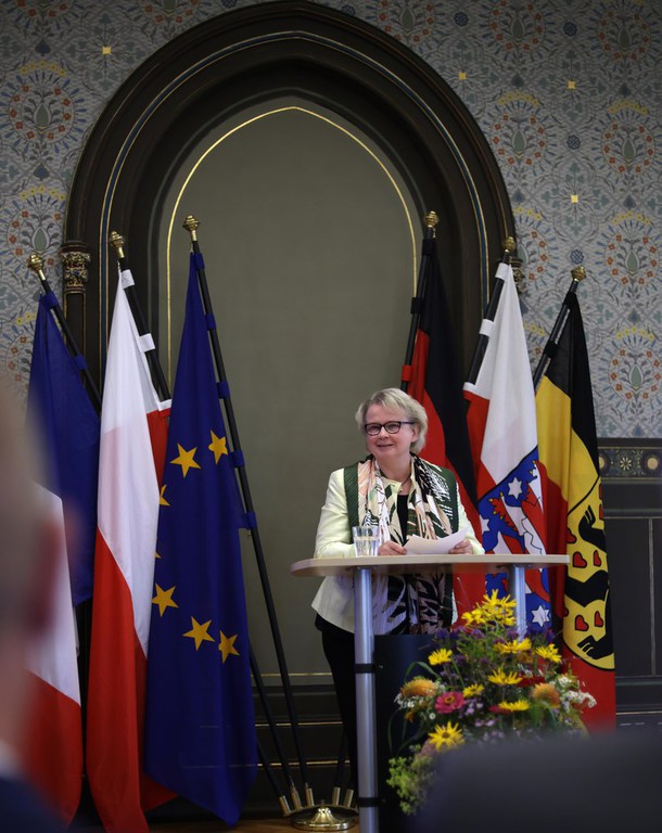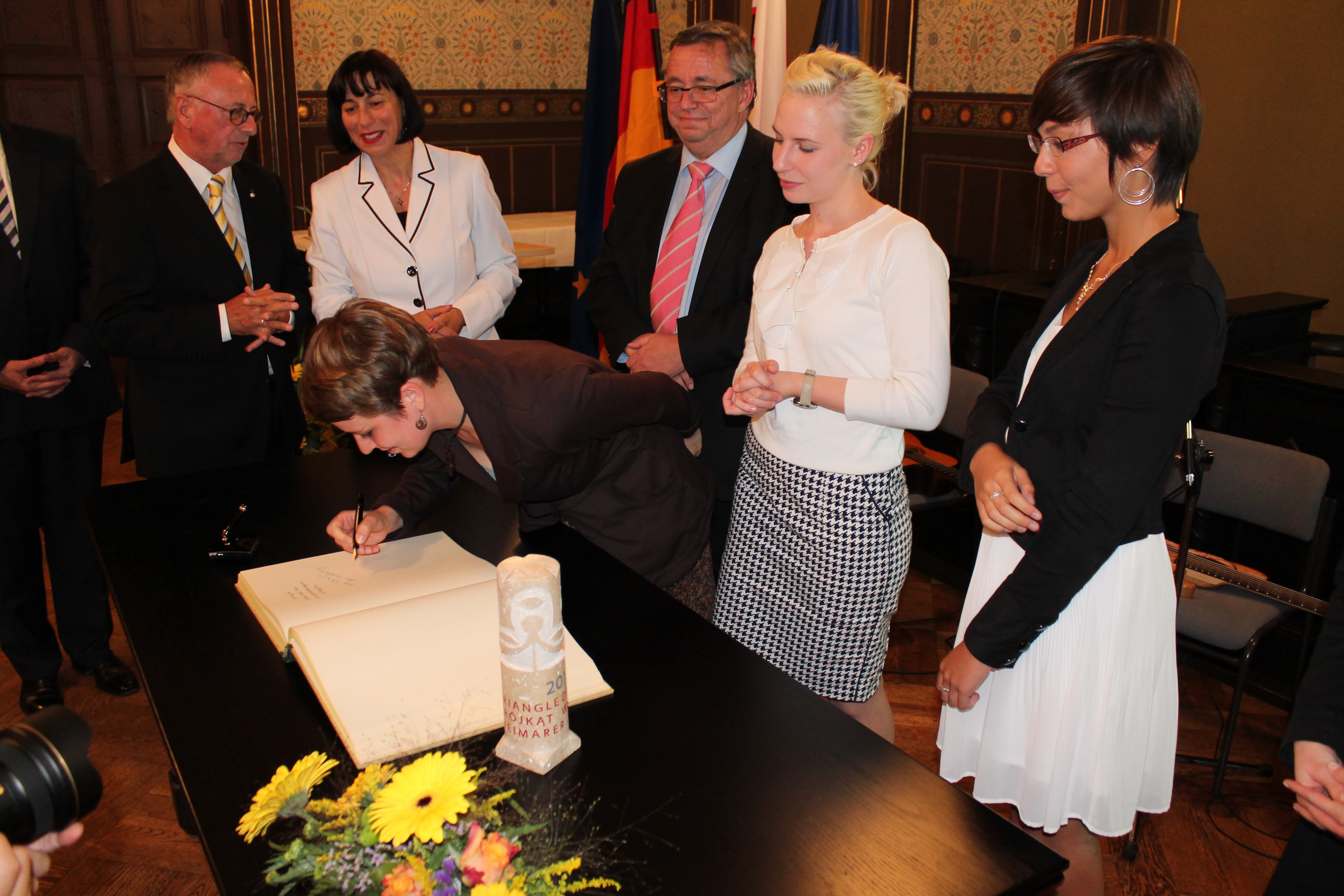 trilateralen Austausches Jugendlicher. Sie würdigte die hervorhebenswerte Leistung aller am Projekt Beteiligten als einen Beitrag für ein gemeinsames europäisches Bewusstsein.