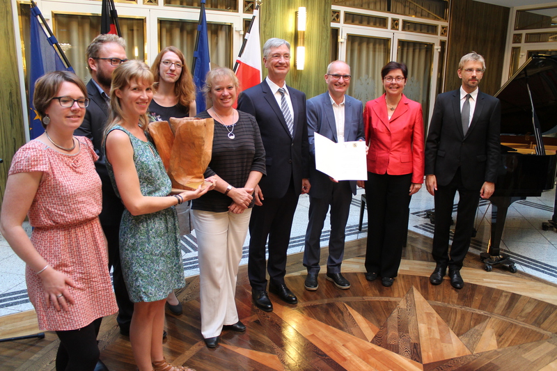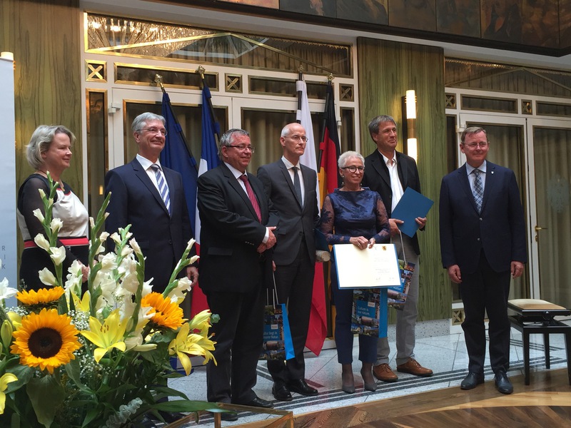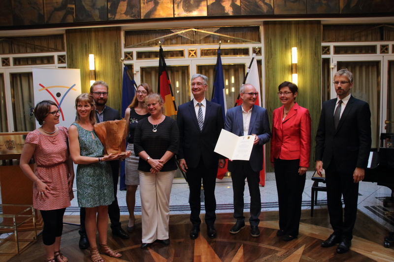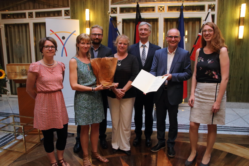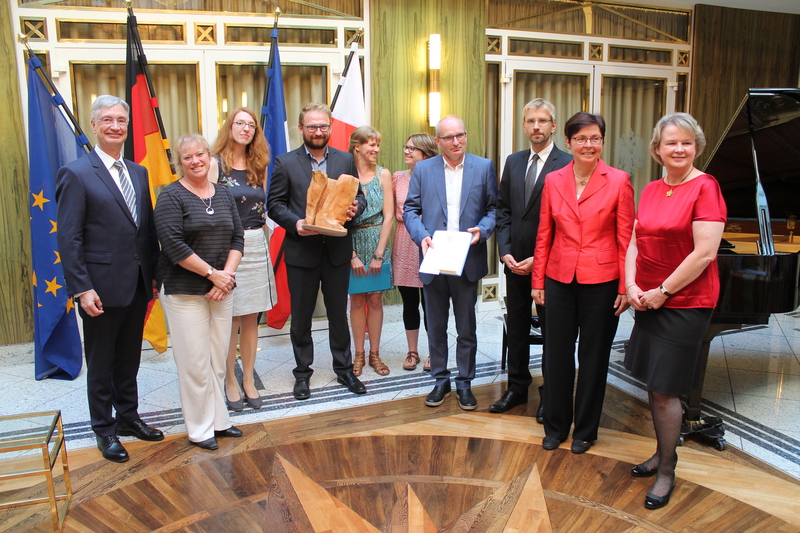 e.V. für das Projekt: Trilaterale Sommerwerkstatt. Den Preis in Höhe von 2000 Euro und die Erinnerungsskulptur des Künstlers Walter Sachs nahmen auch drei junge Projektteilnehmerinnen aus Frankreich,