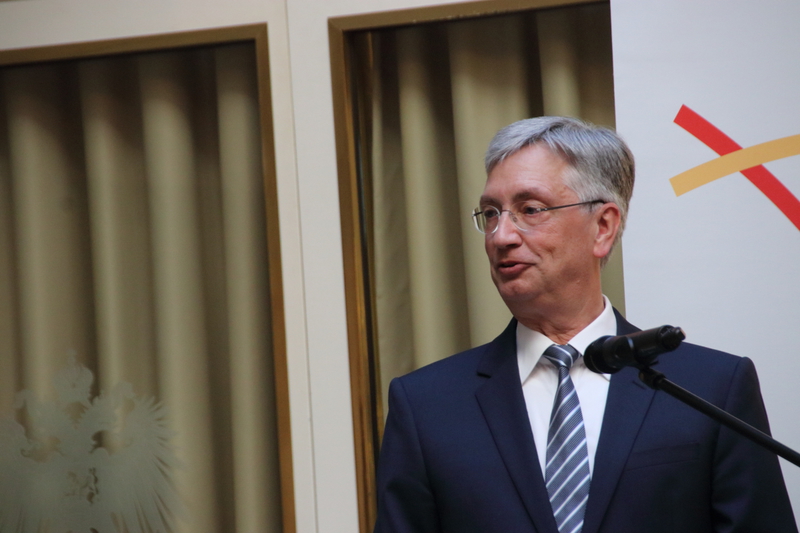 Die Laudatio hielt Malte Krückels, Thüringer Staatssekretär für Europa, Medien und Bevollmächtigter des Freistaats Thüringen beim Bund. Die polnische Botschaft wurde