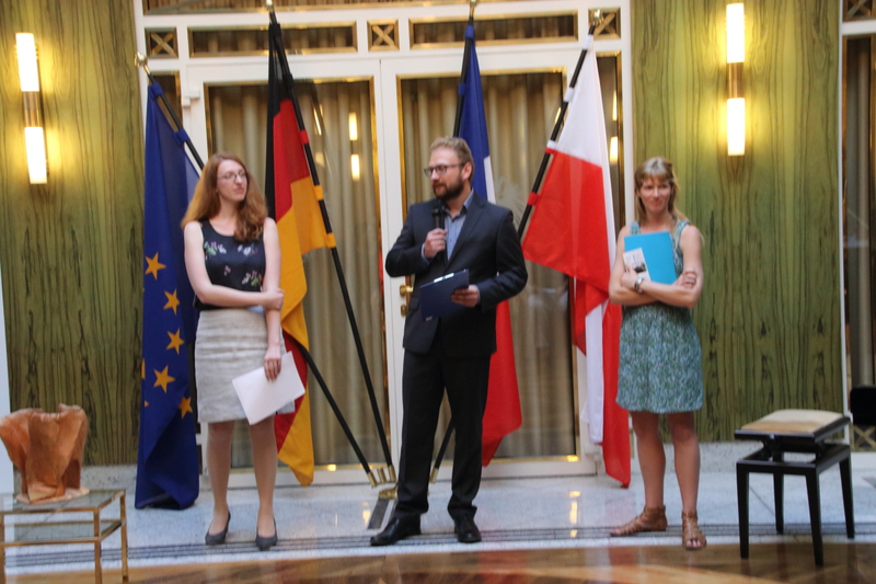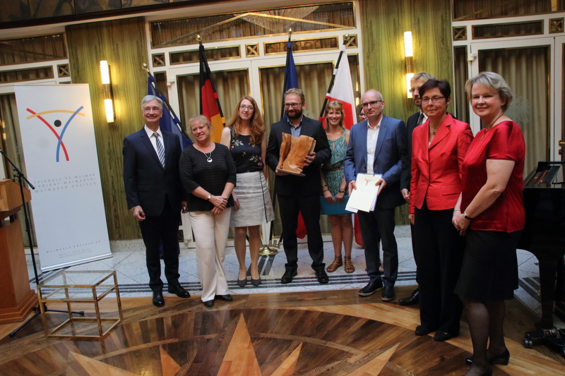 Bei der Übergabe des Preisgeldes in Höhe von 2000 Euro, einer Festurkunde und der vom Künstler Walter Sachs geschaffenen Erinnerungsskulpture, betonte der Vorsitzende des Vereins Dieter Hackmann, das mit der Vergabe des Preises, das Weimarer Dreieck an der Basis angekommen sei. Ziel sei, die zivilgesellschaftliche Partnerschaft zwischen Polen, Frankreich und Deutschland in den Mittelpunkt zu rücken und die weitere Annäherung der Menschen auf verschiedenster Ebenen zu unterstützen, wie auch ihr eigenständiges Engagement zu würdigen. Die Preisverleihung war allein durch das Erleben eines Miteinanders junger Menschen eine große Bereicherung, die zeigte, wie unkompliziert und allein durch Leidenschaft und Tatendrang, sowie Ideenreichtum, ein lebendiges Projekt entstehen kann. Die daraus erwachsene wertvolle Beziehung trägt zu einem interkulturellen Verständnis bei und steht stellvertretend für ein gemeinsames Europa.