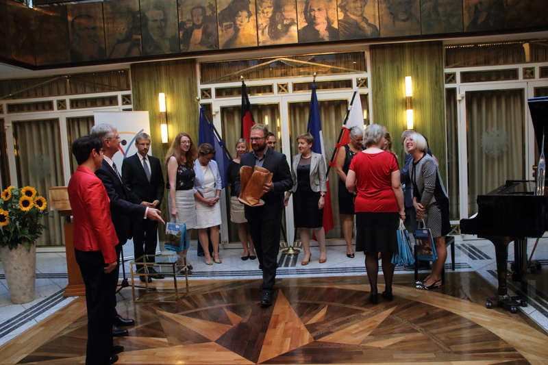 In Anwesenheit der Vertreter der Botschaften Polens, Frankreichs, des Auswärtigen Amts, des Freistaates Thüringen, der Stadt Weimar und weiterer Vertreter von Institutionen, Vereinsmitgliedern und interessierten Bürgern wurde der Preis für zivilgesellschaftliches Engagement symbolisch an drei junge Leute im Alter von 17 bis 24 aus Polen, Frankreich und Deutschland für das Tasifan-Projekt vergeben.