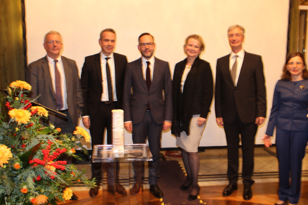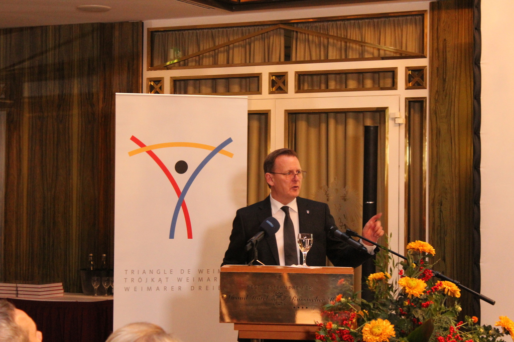 Die Laudatio anlässlich der Verleihung des Weimarer-Dreieck-Preises hielt Staatsminister Michael Roth, Auswärtiges Amt. Der Ministerpräsident des Freistaats Thüringen Bodo Ramelow und die
