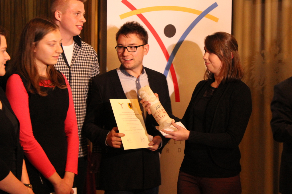 zivilgesellschaftliches Engagement im Jugendbereich ausgezeichnet. Mit einer Erinnerungsskulptur des Künstlers Walter Sachs, einer Urkunde und einem Preisgeld in Höhe von 2000 Euro würdigten der