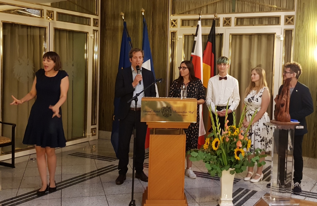 Preisträger ist das Centre Français de Berlin gGmbH, das vor allem für sein Projekt “Drei Länder, sechs Sprachen, ein Projekt: das Weimarer Dreieck auf der Bühne" ausgezeichnet wurde.