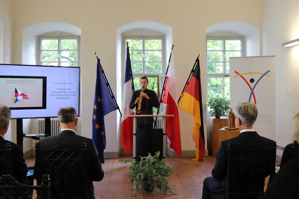 Am Sonntag, 29. August 2021, hat der Weimarer Dreieck e.V. in Kooperation mit dem Oberbürgermeister der Stadt Weimar den diesjährigen 10. Weimarer-Dreieck-Preis an das Gymnasium Ernestinum in Rinteln (Niedersachsen) für dessen Projekte "KINEMA triangulaire - Interkulturelle Filmbildung im deutsch-französisch-polnischen Dialog" und „Europa gehört uns!“ verliehen. Neben dem Gymnasium Rinteln, das sich für den Dreieck-Preis beworben hatte, sind außerdem weitere Schulen in Niedersachen, in der Normandie, der Region Provence-Alpes-Côte d’Azur sowie der Woywodschaft Niederschlesien an den Projekten beteiligt.