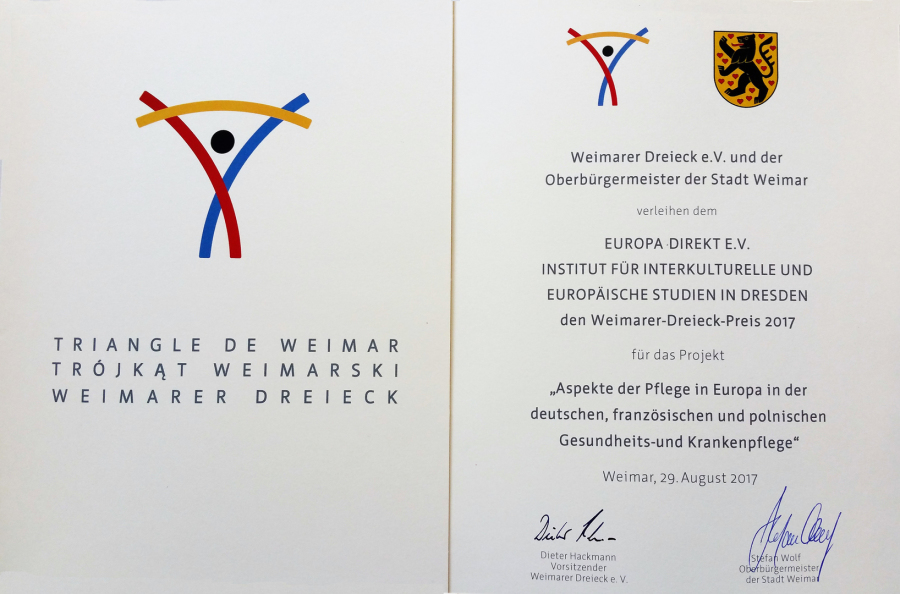 Mit der Verleihung würdigt der Verein Weimarer Dreieck e.V. gemeinsam mit dem Oberbürgermeister der Stadt Weimar das Engagement der Projektpartner aus Frankreich, Polen und Deutschland zur Festigung des europäischen Geistes ebenso wie das gezeigte gegenseitige Vertrauen und interkulturelle Lernen, ihre Toleranz und Offenheit. Erfreulich ist zudem, dass das trilaterale Projekt fortgesetzt werden soll.