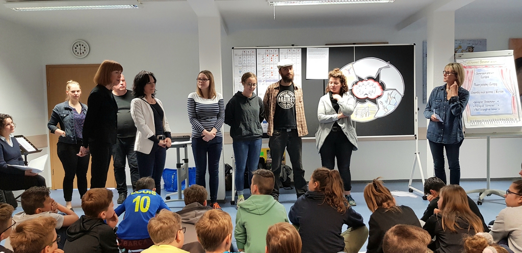 Zu der Projektwoche gehörten eine Exkursionen nach Weimar und die Beteiligung am Europafest in Suhl mit polnischen, französischen und deutschen Kinderliedern. Die Schirmherrschaft hatten