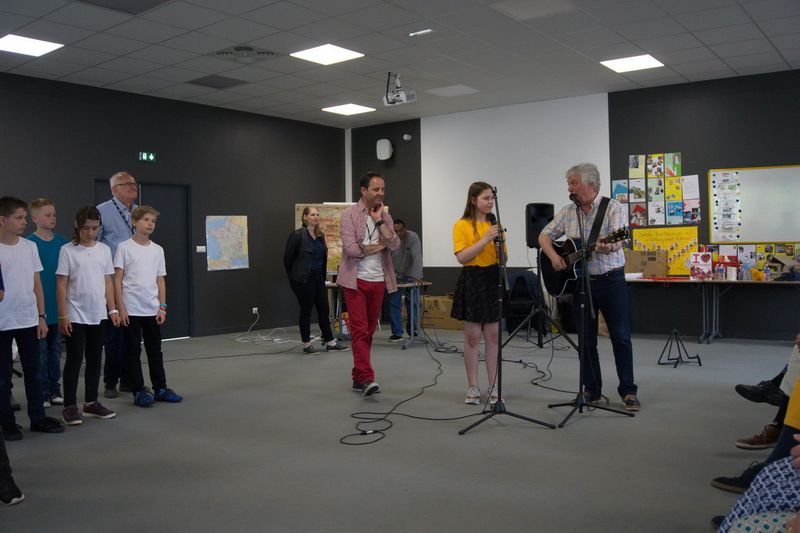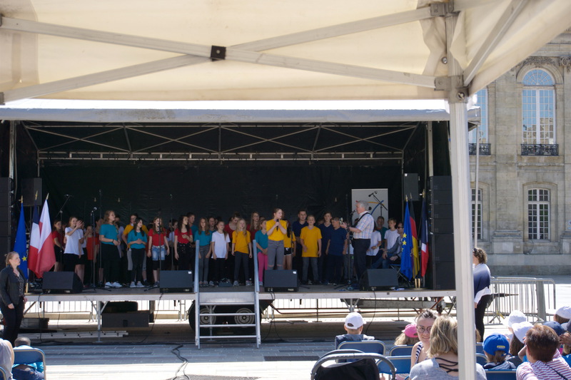 der Bühne standen. Die Konzerte vor dem Rathaus in Beauvais und im großen Saal der Jugendherberge in Amiens fanden großen Beifall. In Beauvais wurden die Kinder, ihre Betreuer, die Vertreter des