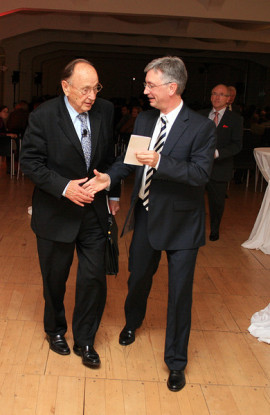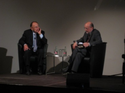 Bundesaußenminister a.D. Hans-Dietrich Genscher und polnischer Journalist und Publizist Adam Krzeminski im Gespäch