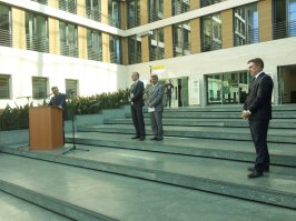 hielten Grußworte Dieter Hackmann, Vorsitzender des Weimarer Dreiecks e.V., TSK-Staatssekretärin Babette Winter und weitere Vertreter der Deutsch-Französischen Hochschule und des Polnischen