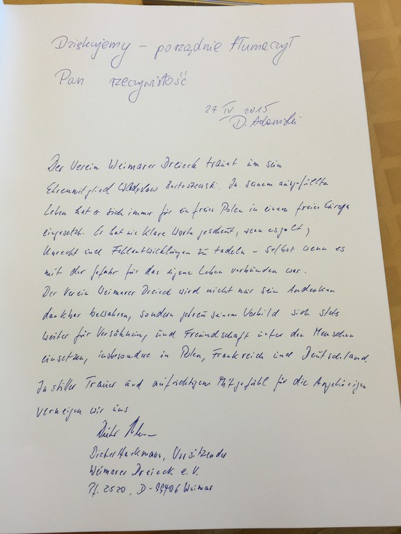 Kondolenz des polnischen Partnervereins Stowarzyszenie Trojkat Weimarski