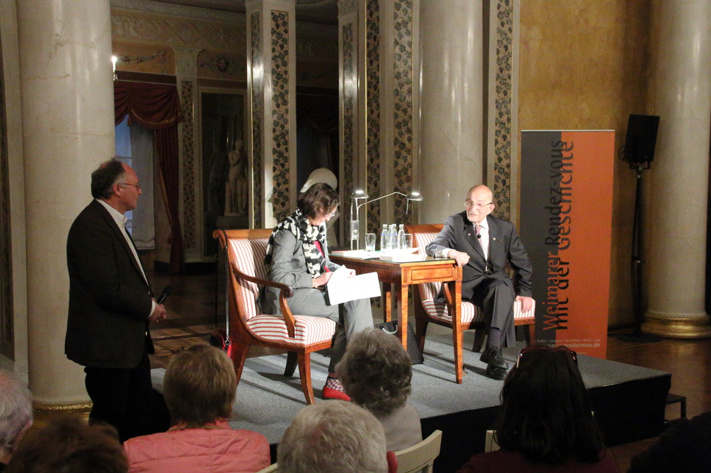 und Projektleiterin des Weimarer Rendez-vous mit der Geschichte, moderierte einfühlsam die Veranstaltung zu seinen in Frankreich erschienen Memoiren unter dem Titel „Le pull-over de Buchenwald“.