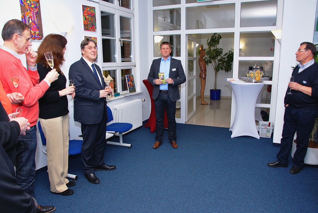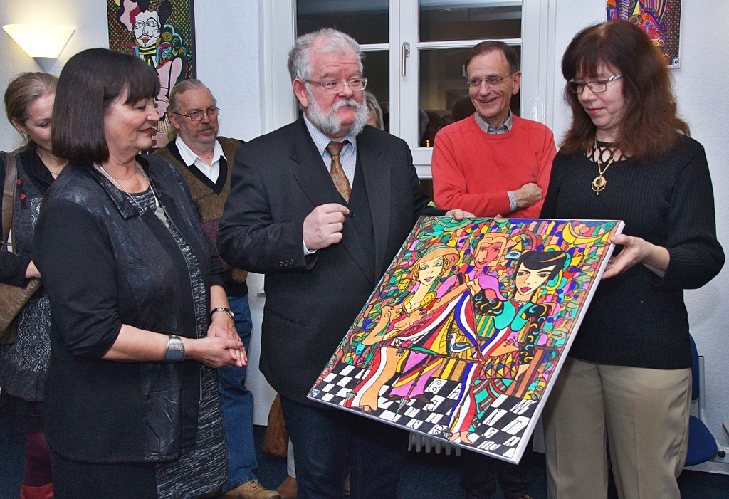 Der Verein "Weimarer Dreieck e.V." zeigt sich dankbar und bewegt angesichts eines Bildes, das er anlässlich der Finissage des Künstlers Thomas Hollstein-Tiegs in der Sparda Bank Erfurt am 27. Januar