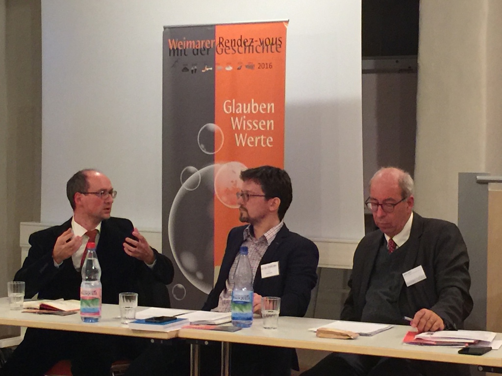 Im Rahmen des Weimarer Rendez-vous 2016 zum Thema "Glauben-Wissen-Werte" erfolgte eine lebendige und fundierte öffentliche Diskussion im Sinne des Weimarer Dreiecks mit französischen, polnischen und