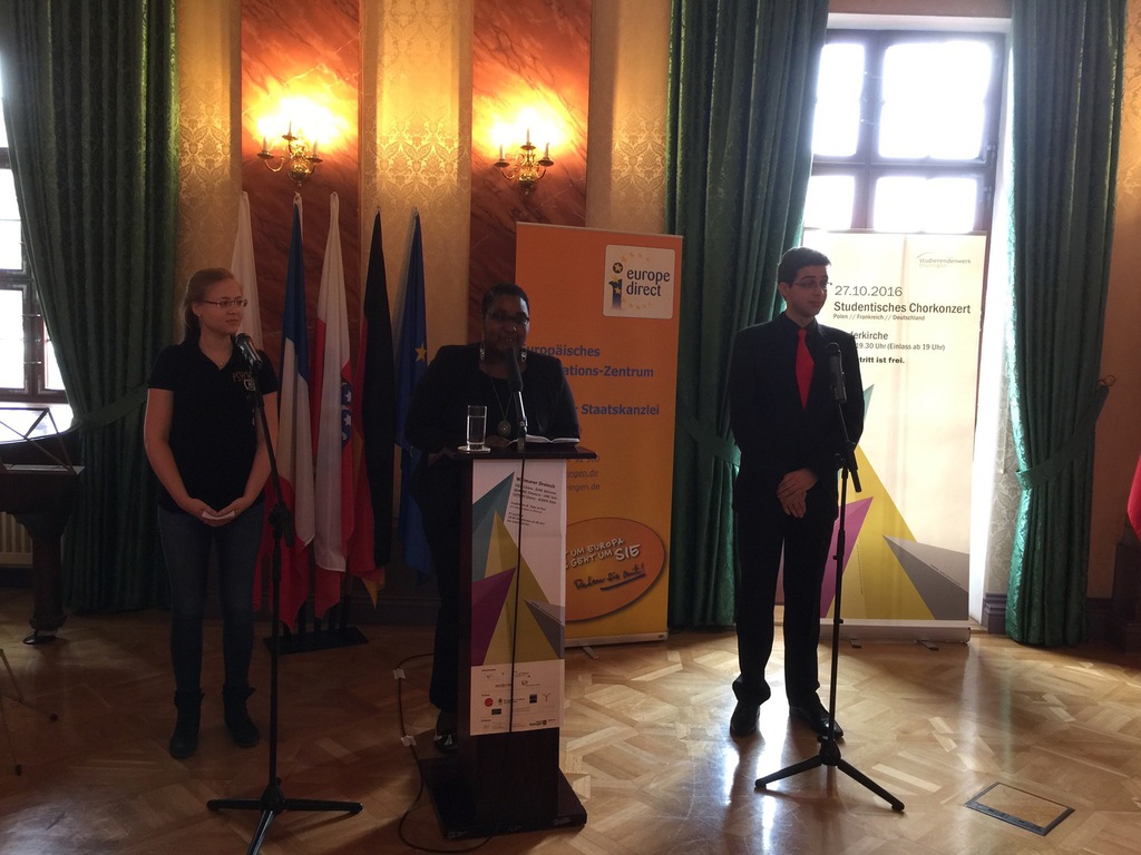 Empfang in die Thüringer Staatskanzlei ein, bei dem bereits einige der einstudierten Musikstücke überzeugend aufgeführt wurden. Der Chor der Université Jules Verne Amiens, der Chor „Con Fuoco“ der