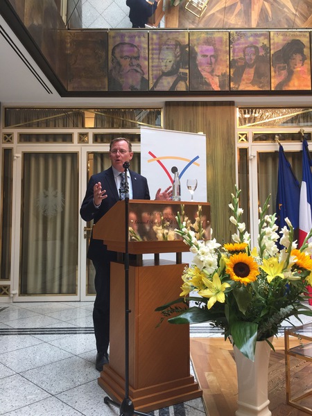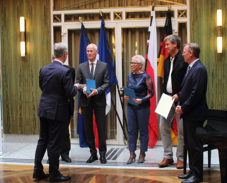 und Dozenten und das Engagement der Studierenden aus Frankreich, Polen und Deutschland als beispielgebend heraus. Die Laudatio hielt der Thüringer Ministerpräsident Bodo Ramelow.