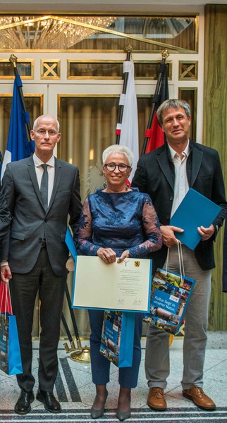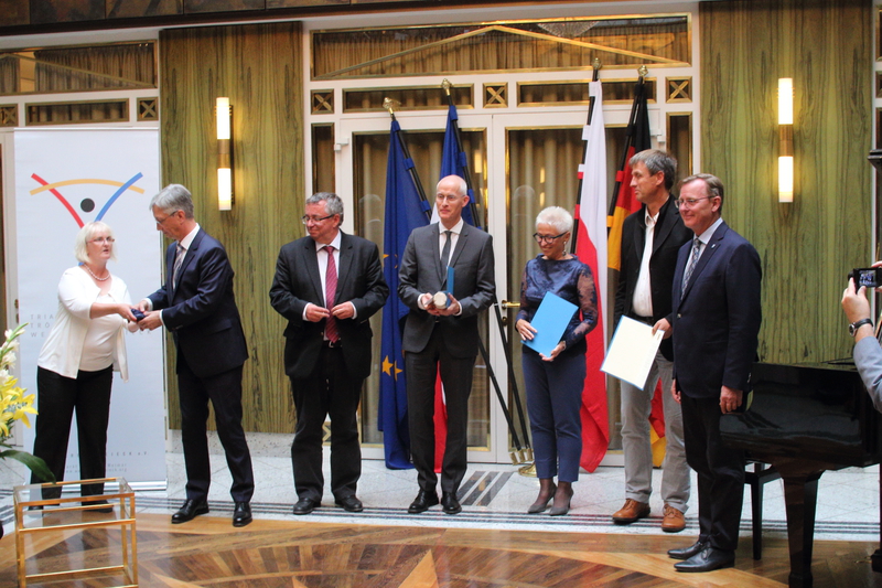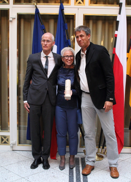 Prof. Claus Ensberg (D), Liliane Sadowska (PL) und Hubertus Bialas (F) haben den mit 2000 Euro dotierten Preis,eine Ehrenurkunde und eine Erinnerungsskulptur, gefertigt vom Künstlers Walter