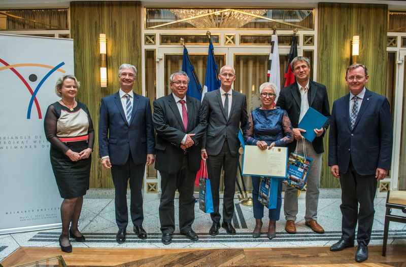 Aus Anlass des 25. Jahrestages des Weimarer Dreiecks haben der Verein Weimarer Dreieck e.V. und der Oberbürgermeister der Stadt Weimar gemeinsam den Weimarer-Dreieck-Preis am Freitag, den 29. August im Rahmen einer Festveranstaltung im Grand Hotel Russischer Hof in Weimar verliehen.