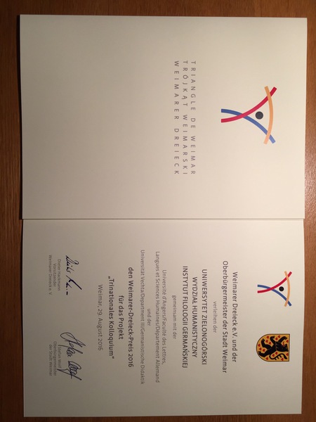Für ihren Beitrag zur europäischen Verständigung werden die germanistischen Fakultäten von drei Universitäten in Deutschland, Frankreich und Polen mit dem Weimarer-Dreieck-Preis 2016