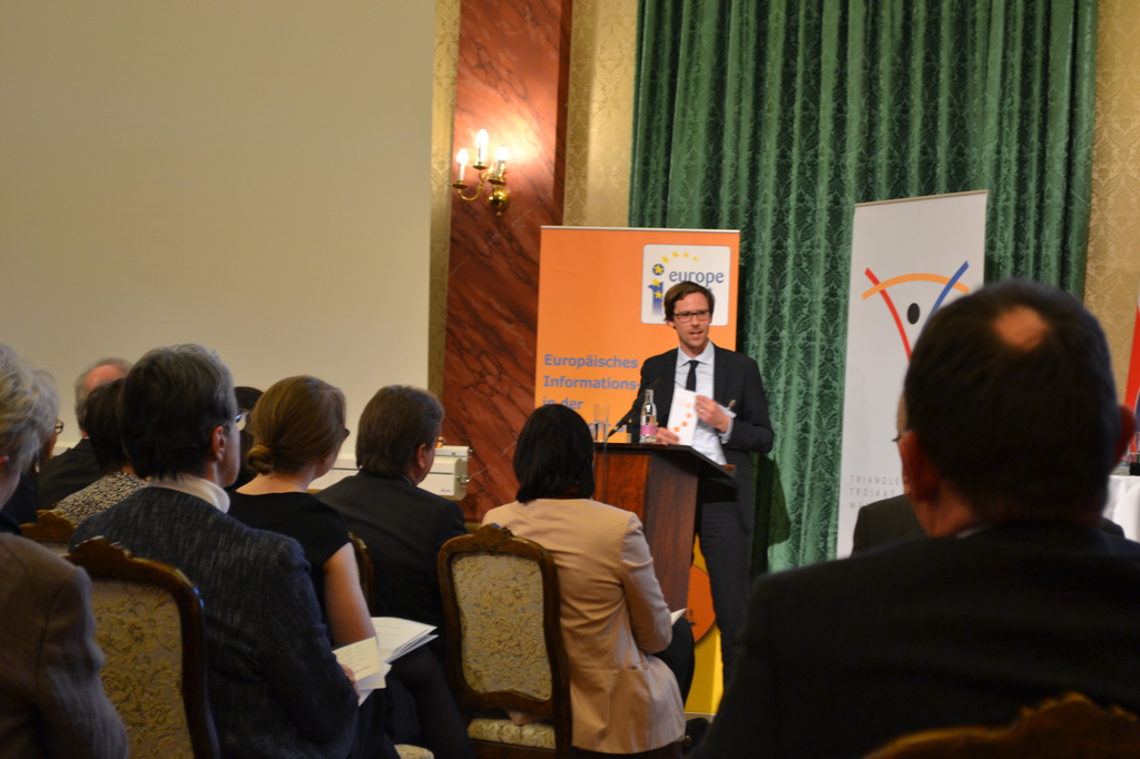 Sie informierten über Ihre Gründungsabsichten, berichteten über ihre Ziele und Aufgaben und stellten die weitere Zusammenarbeit mit dem deutschen Weimarer Dreieck Verein in den Fokus ihrer zukünftigen trinationalen Arbeit. Aus dem Auswärtigen Amt der Bundesrepublik Deutschland referierte der stellvertretende Leiter des Referates Mitteleuropa, Dr. Niels von Redecker, über Bilanzen und Perspektiven des Weimarer Dreiecks und nahm auch zu aktuellen Äußerungen des polnischen Außenministers zum Weimarer Dreieck Stellung.