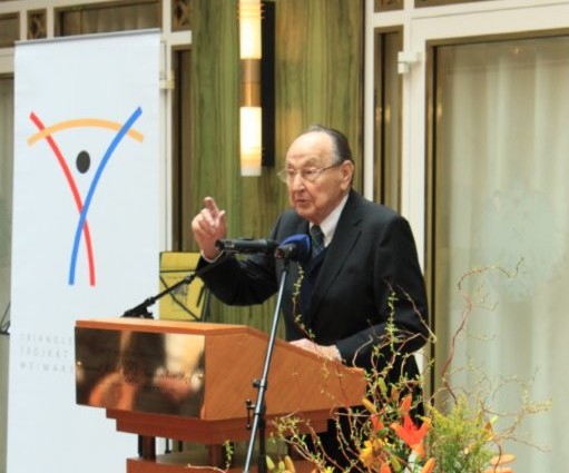 Es war ein bewegender Augenblick, als anschließend Bertrand Herz, langjähriger Präsident des Internationalen Komitees Buchenwald-Dora und Kommandos und ehemaliger Buchenwald-Häftling, das Wort nahm,