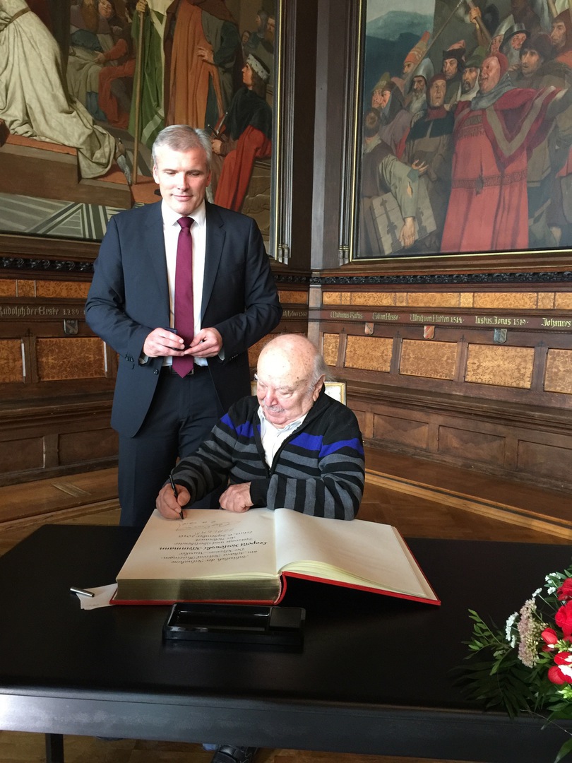 Leopold Kozlowski-Kleinmann war auch Gast im Erfurter Rathaus und wurde vom Oberbürgermeister der Landeshauptstadt Erfurt, Herrn Andreas Bausewein, begrüßt.