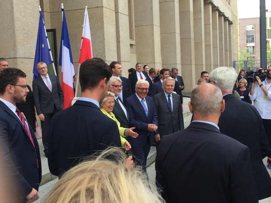 Botschafterkonferenz anlässlich des 25. Jubiläums des Weimarer Dreiecks gemeinsam mit dem französischen Außenminister Jean-Marc Ayrault und dem polnischen Außenminister Witold Waszczykowski.