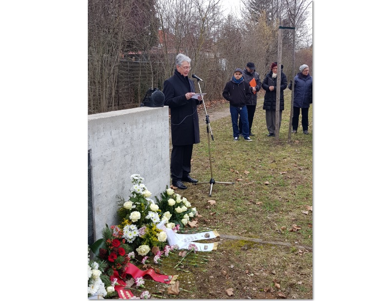 Im Rahmen der Gedenkveranstaltung am 9.2. 2020 sagte Bürgermeister Kirsten in seiner Rede: "Wir erneuern an diesem Ort in dieser Stunde unser Bekenntnis zum Schwur von Buchenwald: Nie wieder Faschismus! Für eine Welt des Friedens! Wir können etwas tun, der menschengemachten Unbarmherzigkeit der Geschichte nicht noch einmal zum Triumph zu verhelfen."