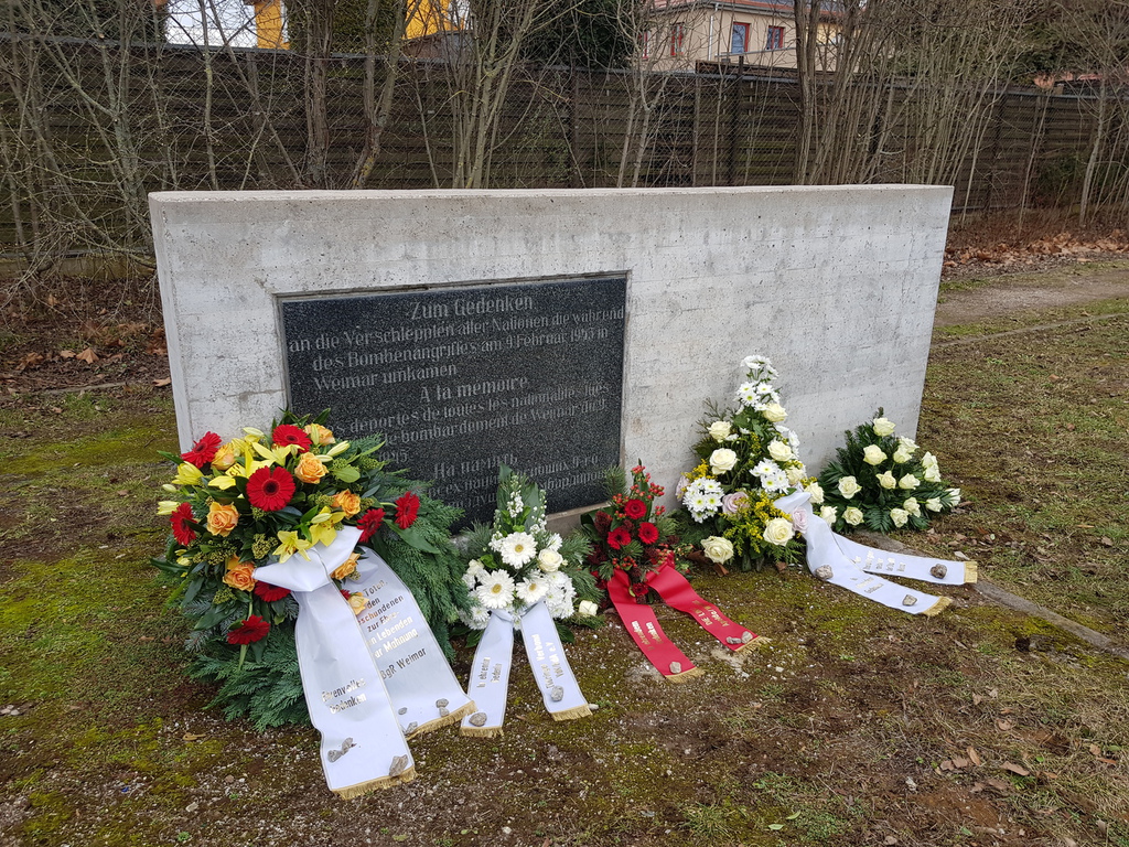 Abschließend dankte der Vorsitzendes des Weimarer Dreieck e.V., Dieter Hackmann, für das beeindruckende Zeichen, dass die Menschen durch ihr Kommen zur Erinnerung an die Opfer des Luftangriffs vor 75 Jahren an diesem Ort und den so vielen weiteren Opfern in dieser Zeit gesetzt haben: " Sie machen damit auch deutlich, dass wir keinesfalls nachlassen dürfen zu erinnern, was passiert, wenn Verhältnisse geduldet werden, in denen die Menschenwürde nicht selbstverständlich geachtet wird, und zwar jedes einzelnen Menschen, ganz gleich welcher Kultur, Sprache, Hautfarbe, Religion, Geschlecht oder welche Unterschiedlichkeiten es noch geben mag."