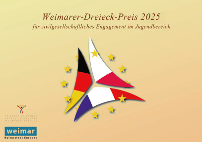 Mit dem Preis des Weimarer Dreiecks, der am 27. August 2025 vom Verein Weimarer Dreieck gemeinsam mit dem Oberbürgermeister der Stadt Weimar in Weimar verliehen wird, möchten wir herausragende trilaterale Aktivitäten zur Verbreitung der Ideen des Weimarer Dreiecks würdigen. Insbesondere begrüßen wir Initiativen, die zum Ziel haben, die Werte des Weimarer Dreiecks unter Kindern und Jugendlichen zu verbreiten und dazu geeignet sind, die trilaterale Zusammenarbeit nachhaltig zu stärken. Ein weiteres Kriterium ist die Übertragbarkeit des Ansatzes auf weitere Projekte mit polnischen, französischen und deutschen Partnern.